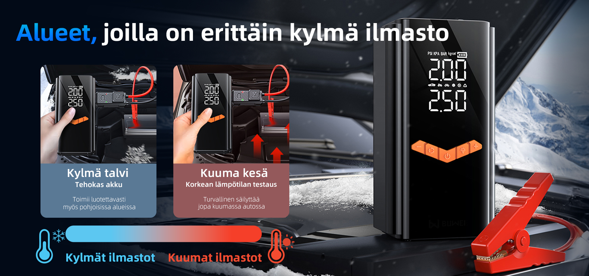 •Kristallinkirkkaat kaksoisnäytöt (PSI/KPA automaattivaihto)