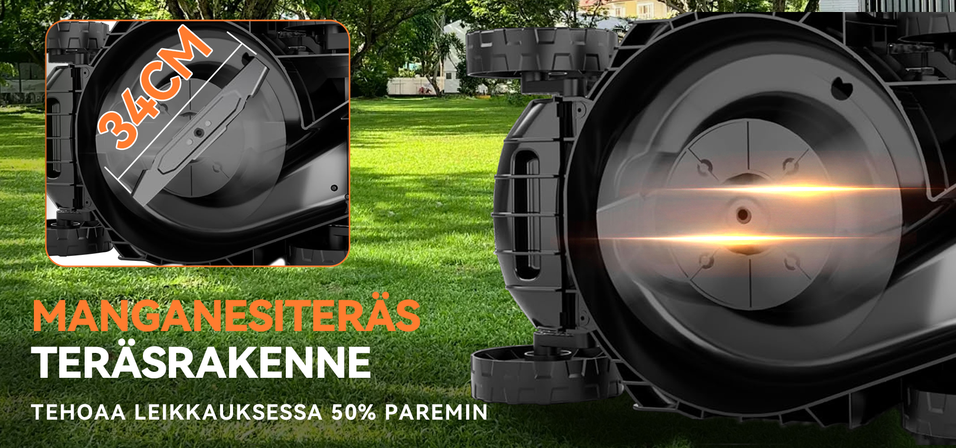 Muuta nurmikkosi hoito vaivattomaksi ja tehokkaaksi. Älykäs suunnittelimme yhdistää tehokkuuden ja käytännöllisyyden, ja sisältää akun tilan seurannan, mukavan käytettävyyden ja tilansäästöä. Älykäs multausjärjestelmä hoitaa nurmikkosi samalla kun nautit sulavasta, vaivattomasta käytöstä - kaikki yhdessä tyylikkäässä paketissa.