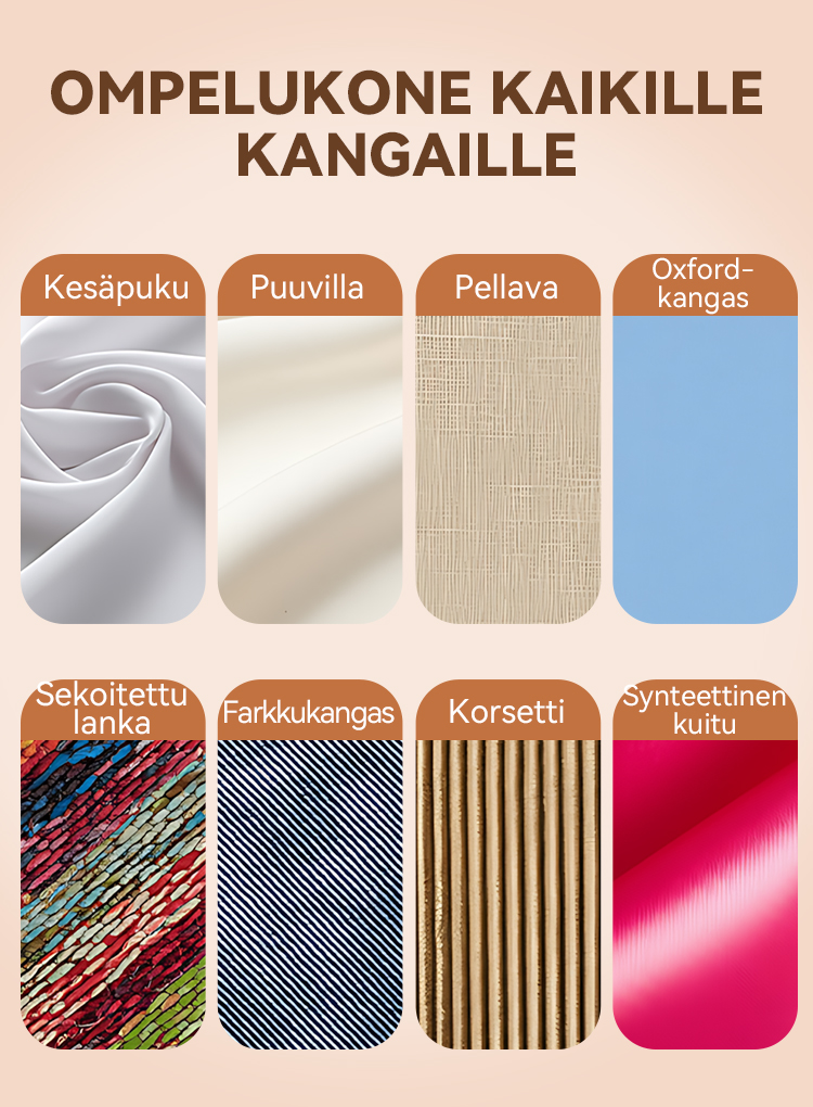 Ompelee 4–6 kerrosta paksua kangasta