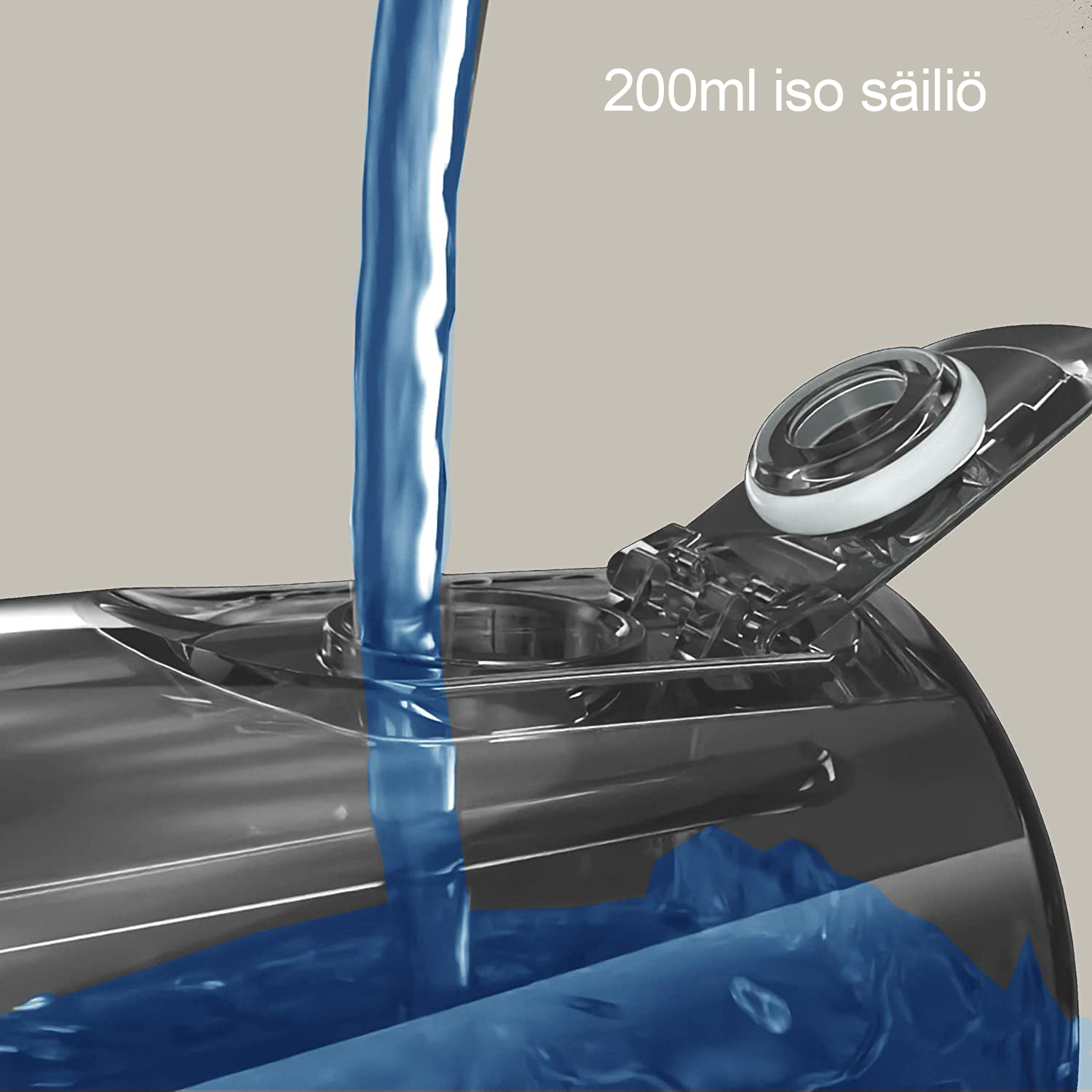 200 ml vesisäiliö on tarpeeksi suuri, jotta voit helposti käydä läpi koko suunhoitorutiinin.