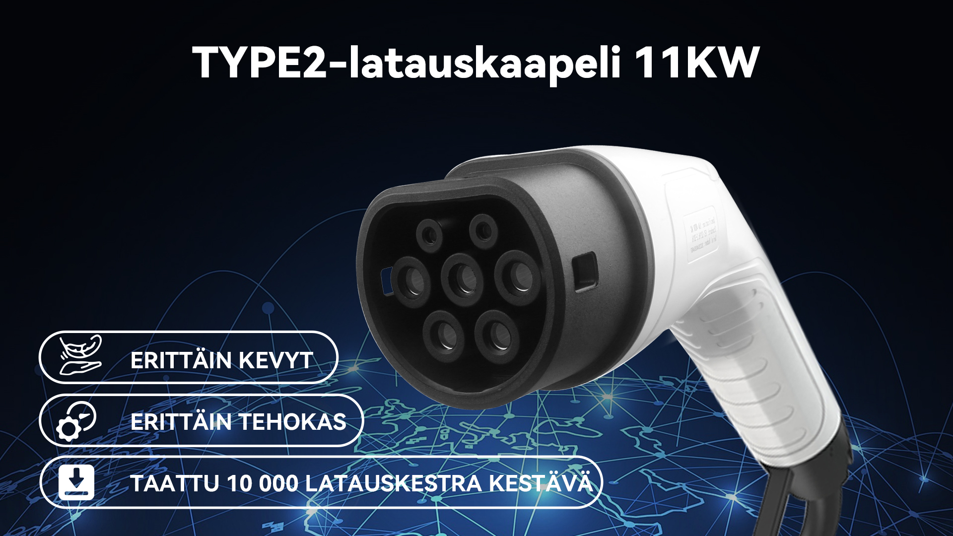 22 kW (32 A, kolmivaiheinen) – Suunniteltu maksimaaliseen AC-lataustehoon ajoneuvoille ja latauspisteille, jotka tukevat sitä