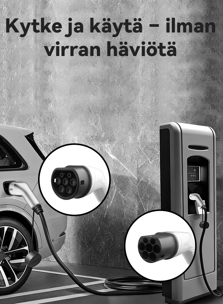 7,4 kW (32 A, yksivaiheinen) – Ihanteellinen kotilataukseen ja ajoneuvoille, joissa on yksivaiheinen sisäinen laturi